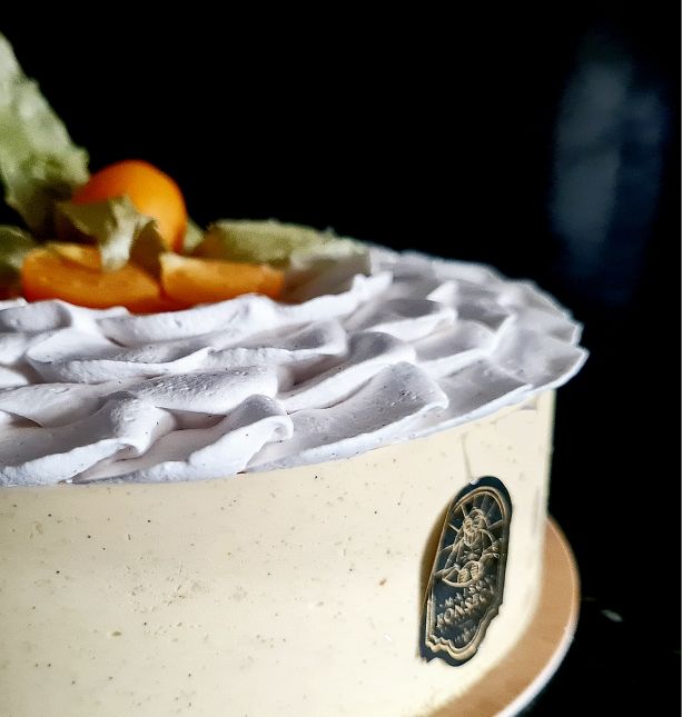 garnie d'une crème onctueuse à la vanille bio de Madagascar.